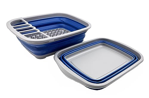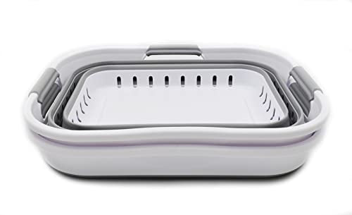 SAMMART 2 pcs Camping Set 10L (2.6 Gallons) Collapsible Tub - Foldable Dish Tub & 8L (2.11Gallons) Collapsible Dish Drainer