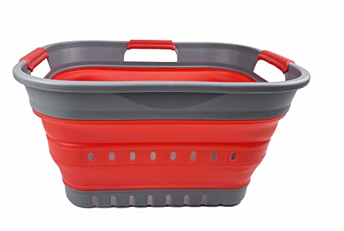 SAMMART 19L (5 gallon) Super Mini Collapsible 3 Handled Plastic Basket - Foldable Pop Up Storage Container/Organizer - Space Saving Hamper/Basket