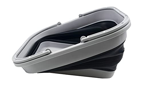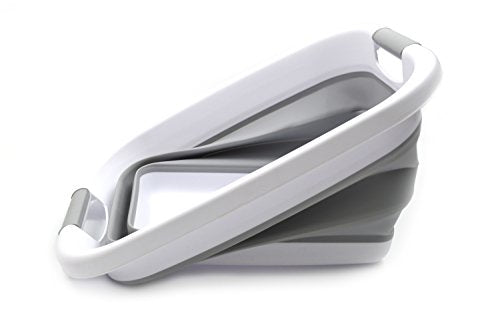 SAMMART 19L (5 Gallon) Collapsible Tub with Handle - Portable Outdoor Picnic Basket/Crater - Foldable Shopping Bag - Space Saving Storage Container (White/Grey)