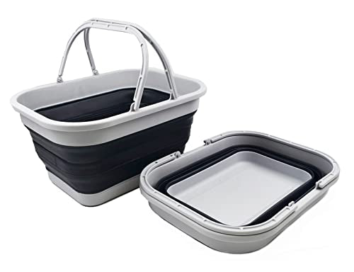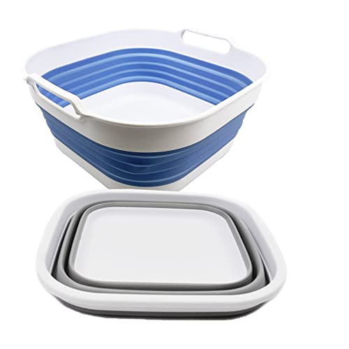 SAMMART 2 pcs Collapsible Tub Set (5.5L (1.4 Gallon) + 10L (2.64 Gallons))-Dishpan-Foldable Washing Basin-Portable Dish Washing Tub-Space Saving Kitchen Storage Tray