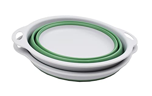 SAMMART 2-pcs Set of 10L(2.6 Gallons) Collapsible Tub & 8L(2.11Gallons) Collapsible Dish Drainer with Drainer Board-Foldable Drying Rack Set-Portable Washing Basin-Space Saving Washtub