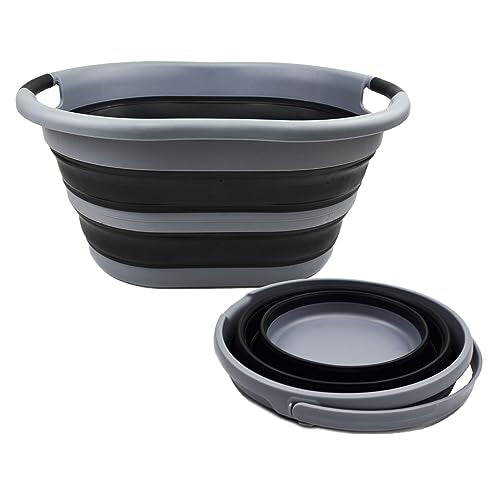 SAMMART 2 pcs. Set 9.2L (2.37Gallon) Collapsible Tub with Handle & 37L (9.77 Gallon) Collapsible Plastic Laundry Basket-Portable Outdoor Picnic Basket/Crater-Space Saving Storage