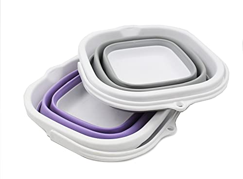 SAMMART 2.6L (0.68 Gallon) Super Mini Square Collapsible Plastic Bucket - Foldable Square Tub - Portable Fishing Water Pail - 2 Pieces Box Pack