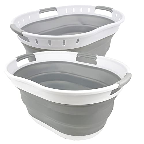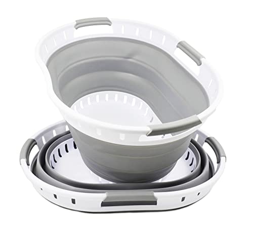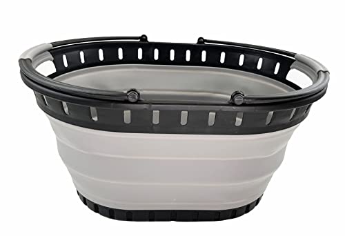 SAMMART 25L(6.6 gallon) Collapsible Plastic Laundry Basket-Oval Tub/Basket-Foldable Storage Container-Portable Washing Tub-Space Saving Laundry Hamper,Water capacity 20L(5.28 gallon)