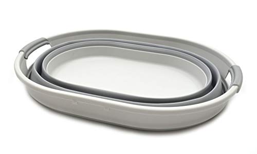 SAMMART 25L(6.6 gallon) Collapsible Plastic Laundry Basket-Oval Tub/Basket-Foldable Storage Container-Portable Washing Tub-Space Saving Laundry Hamper/Tub,Water capacity 20L(5.28 gallon) b
