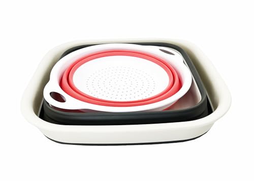 SAMMART 2pcs Set - 8L (2.1 Gallon) Collapsible Tub & 2.6L (0.68 Gallon) Collapsible Colander - Portable Washing Basin - Space Saving Plastic Washtub