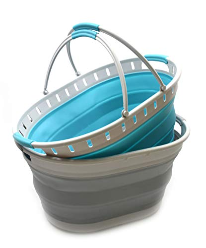 SAMMART 2pcs Laundry Set : Collapsible Plastic Laundry Tub and Basket - Foldable Pop Up Storage Container/Organizer - Portable Shopping Basket - Space Saving Hamper/Tub