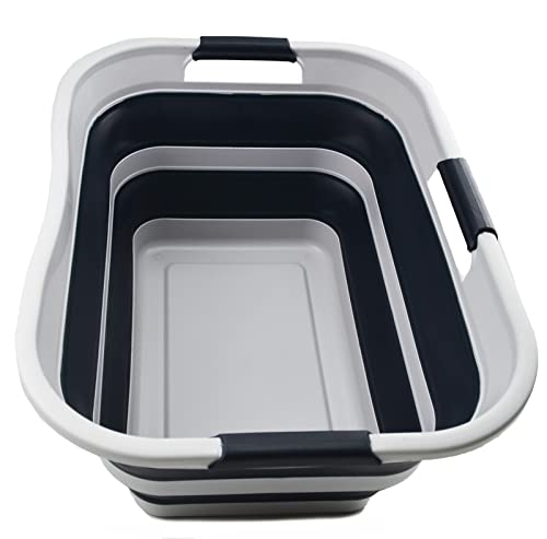 SAMMART 30L (8 gallons) Collapsible Plastic Laundry Washing Tub/Basket - Portable Laundry Hamper/Storage Container Foldable Laundry Basket - Space Saving