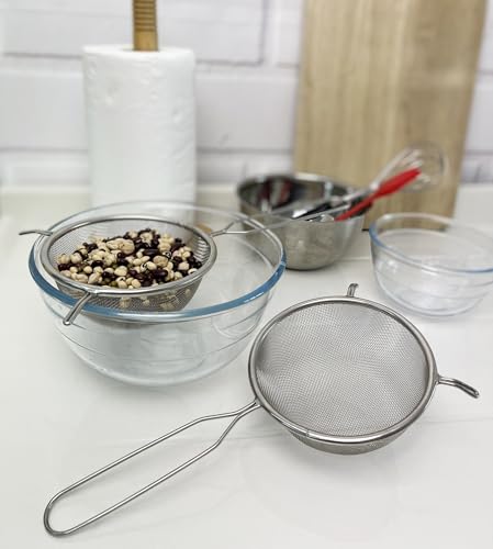 SAMMART 5.5 inches (14cm) Stainless Steel Mesh Strainer with Handle and Two Hanging Support - Round Sieve Colander