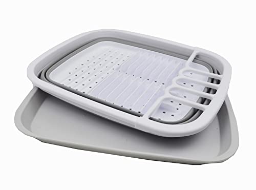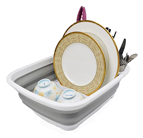 SAMMART 8L (2.1 gallons) Collapsible Platic Dish Drainer with Draining Board - Foldable Drying Rack Set - Portable Dinnerware Organizer - Pop Up Saving Kitchen Storage Tray