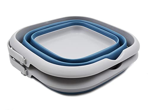 SAMMART 8L (2.1 Gallon) Collapsible Tub - Foldable Dish Tub - Portable Washing Basin - Space Saving Plastic Washtub (Grey/Mist Blue(Dish tub))
