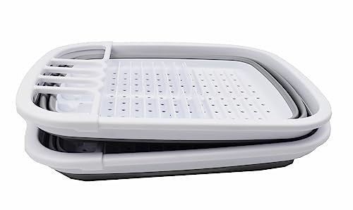 SAMMART 8L (2.11Gallons) Collapsible Dish Drainer with Drainer Board - Foldable Drying Rack Set - Portable Dinnerware Organizer - Space Saving Kitchen Storage Tray