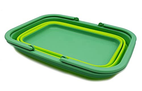 SAMMART 9.1L (2.4Gallon) Collapsible Dishpan with Draining Plug - Foldable Washing Basin - Portable Dish Washing Tub - Space Saving Kitchen Storage Tray