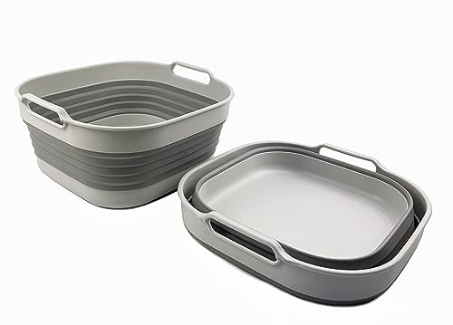 SAMMART 10L (2.6 Gallon) Collapsible Plastic Dishpan - Foldable Washing Basin - Portable Dish Washing Tub - Space Saving - Pop Up Saving
