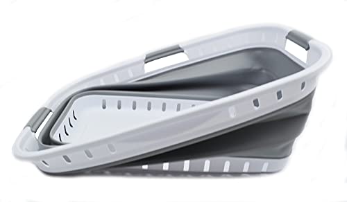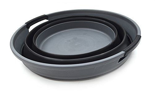 SAMMART 49L (12.9 Gallon) Collapsible 3-Handled Plastic Laundry Basket - Oval Tub - Portable Washing Tub-Space Saving Laundry Hamper, Water Capacity 44L / 11.6 Gallon (2 pcs - Rectangular, Grey)
