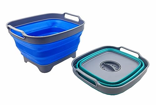 SAMMART 7.5L (2 Gallons) Collapsible Dishpan with Draining Plug - Foldable Washing Basin - Portable Dish Washing Tub - Space Saving y