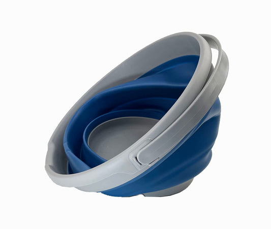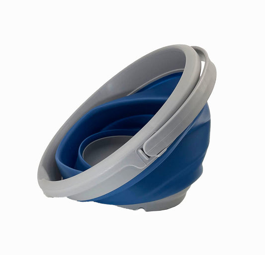 SAMMART Collapsible Plastic Bucket - Foldable Round Tub with Handle - Pop Up Saving (White/Ceramic Blue, 10L)