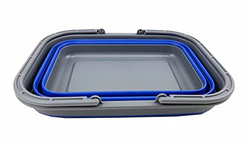 SAMMART Combo Collapsible Plastic Washing up Set, Bucket, Dish Drainer, Dish tub and Laundry Basket with Handle - Space Saving, Camping Set, Picnic Set, (Grey/Mist Blue(Set of 4))