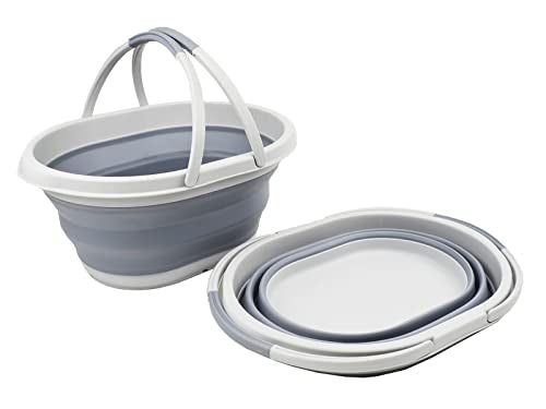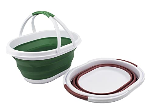 SAMMART 11L (2.9 gallons) Collapsible Plastic Tub with Handle - Portable Outdoor Picnic Basket/Crater - Foldable Storage Container- Space Saving Pop Up Outdoor