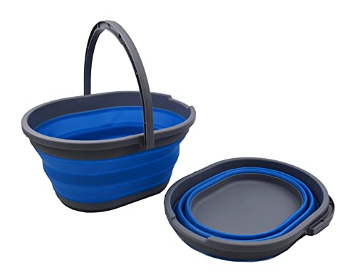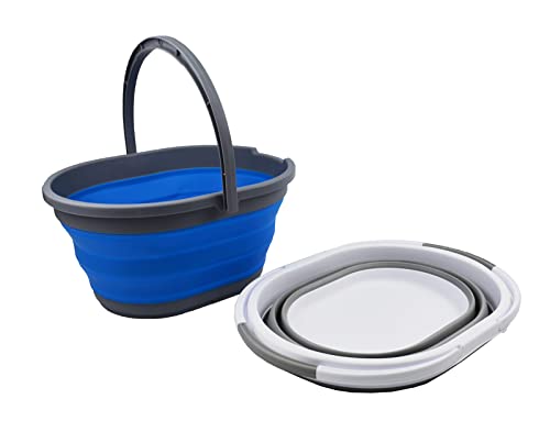 SAMMART 11L (2.9 gallons) Collapsible Plastic Bucket - Flodable Basket with Handle - Portable Outdoor Picnic Basket/Storage Container - Foldable Shopping Bag - Pop Up Saving