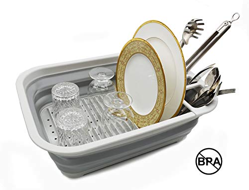 SAMMART 12L (3.17 gallon) Collapsible Dish Drainer with Drainer Board - Foldable Drying Rack Set - Portable Dinnerware Organizer - Space Saving