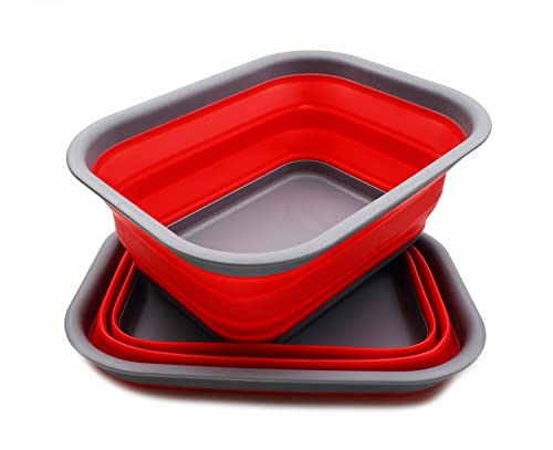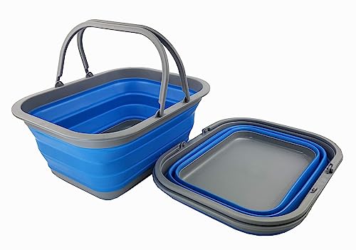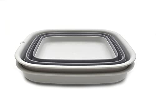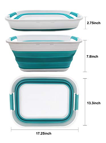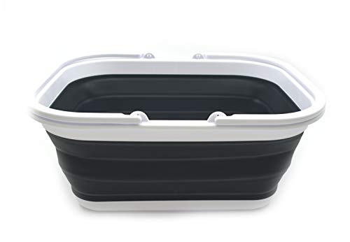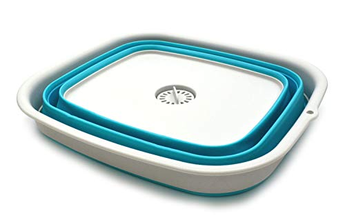 SAMMART 15L (3.9 gallon) Collapsible Dishpan with Draining Plug - Foldable Washing Basin - Portable Dish Washing Tub - Washing Up Bowl - Space Saving Kitchen Storage Tray
