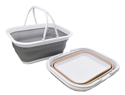 SAMMART 15.5L (4.1 Gallons) Collapsible Tub with Handle - Portable Outdoor Picnic Basket/Crater - Foldable Shopping Bag - Space Saving Storage Container