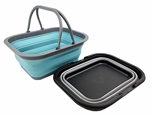 SAMMART 15L (4 gallons) Collapsible Plastic Washing Tub with Handle/Handy Basket - Portable Outdoor Picnic Basket - Foldable Storage Container-Space Saving