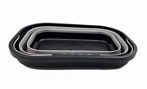SAMMART 12L (3.1 gallons) Collapsible Plastic Rectangular Bucket-Foldable Tub with Handle - Space Saving (Set of 2)