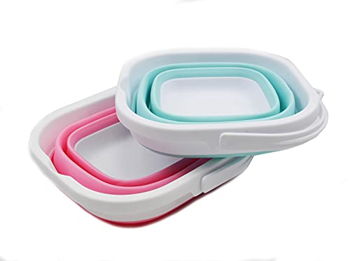SAMMART 2.6L (0.68 Gallon) Super Mini Sqare Collapsible Plastic Bucket - Foldable Square Tub - Portable Fishing Water Pail - 2 Pieces Box Pack (Lake Green & Pink)