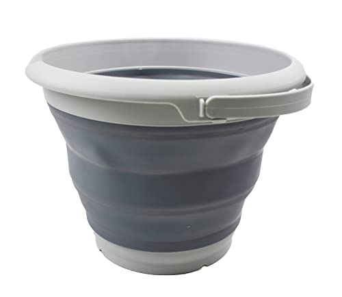 SAMMART 10L (2.6 Gallon) Collapsible Plastic Bucket - Foldable Round Tub - Portable Fishing Water Pail - Space Saving Outdoor Waterpot, Size 33cm Dia (Grey)
