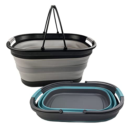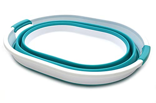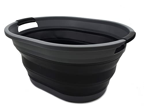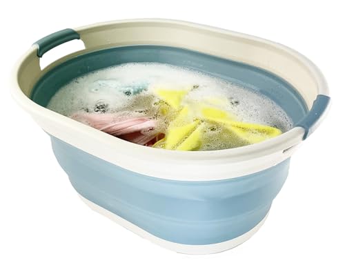 SAMMART 28L (7.4 gallon) Collapsible Plastic Laundry Basket-Oval Tub/Basket - Portable Washing Tub-Space Saving Laundry Hamper, Water capacity: 22L (5.8 gallon)