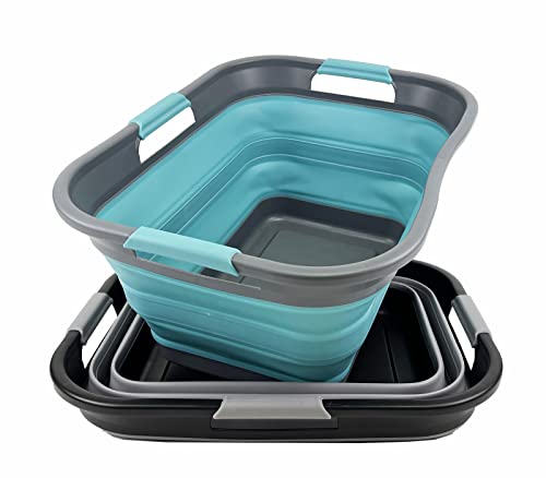 SAMMART 44L (11.6 gallon) Collapsible Plastic Laundry Basket-Foldable Pop Up Storage Container-Portable Washing Tub- pace Saving Hamper, Water Capacity: 35L (9.2 gallon)