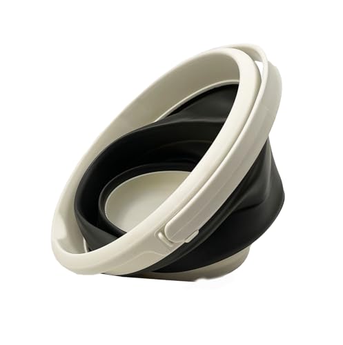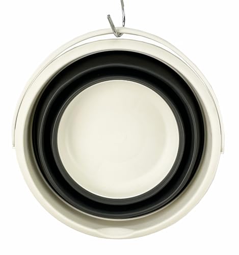 Collapsible Plastic Bucket - Pop up Saving - by SAMMART (Grey/Washed Black, Round, 5.5L)