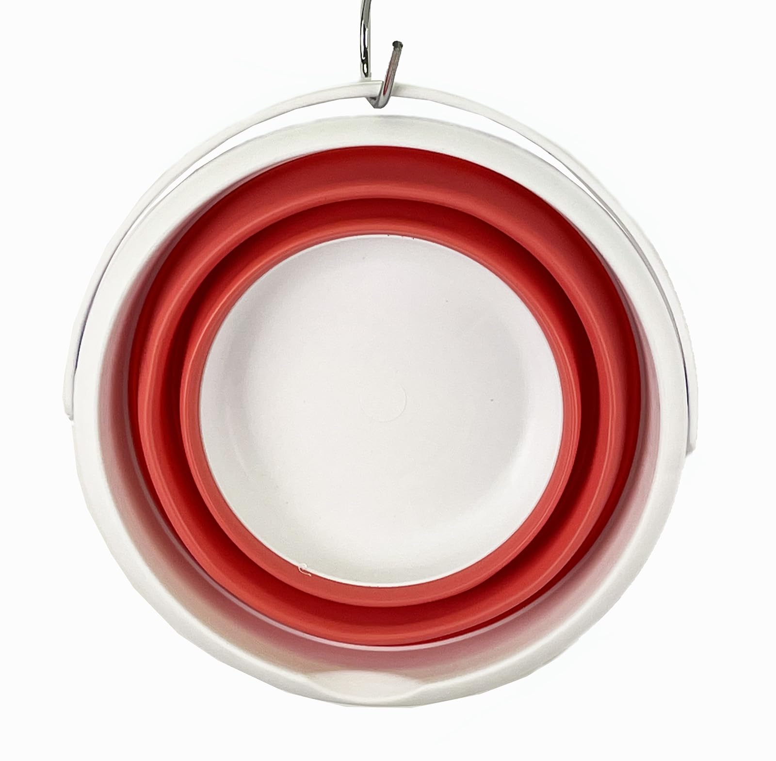 Space-saving with a measurement of 10 (dia) x 7.9 (h) inches when open, and collapses down to 2 (h) inches to save over 70% space when stored. Capacity: 5.5L (1.4 Gallon)