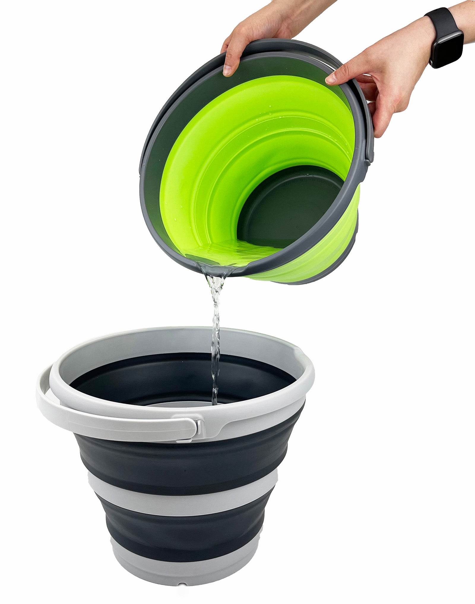 - Space saving with Expanded size: 13 (dia) x 9.6 (h) inches and its height just 2.4 inches after folds, save over 70% space when storage. Capacity: 10L (2.6 Gallon)