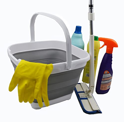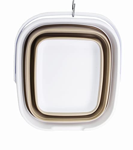 Details: **Collapsible TPE/PP Handy Bucket **Brand: SAMMART **Material: TPE & PP **Expanded size: 13.1 x 12 x 8.6 (h) inches **Collapsed size: 13.1 x 12 x 2.1 (h) inches **Capacity: 10L / 2.6gallon
