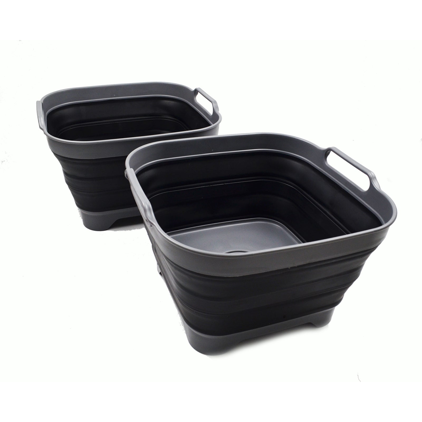 SAMMART 10L (2.6 gallons) Collapsible Plastic Dishpan with Draining Plug - Foldable Washing Tub - Portable Dish Washtub - Space Saving Kitchen Outdoor Pop Up