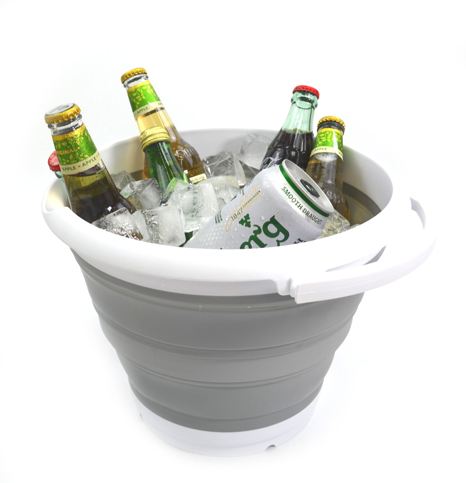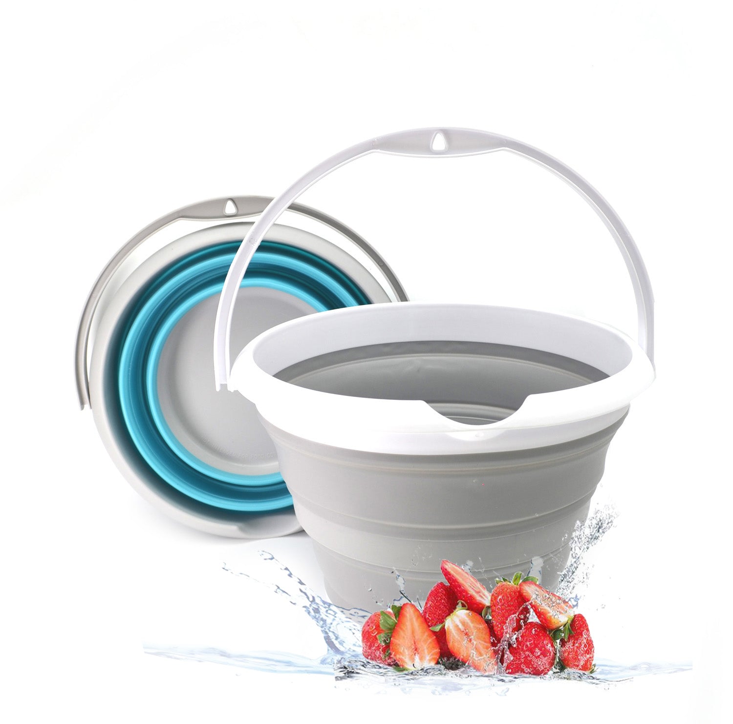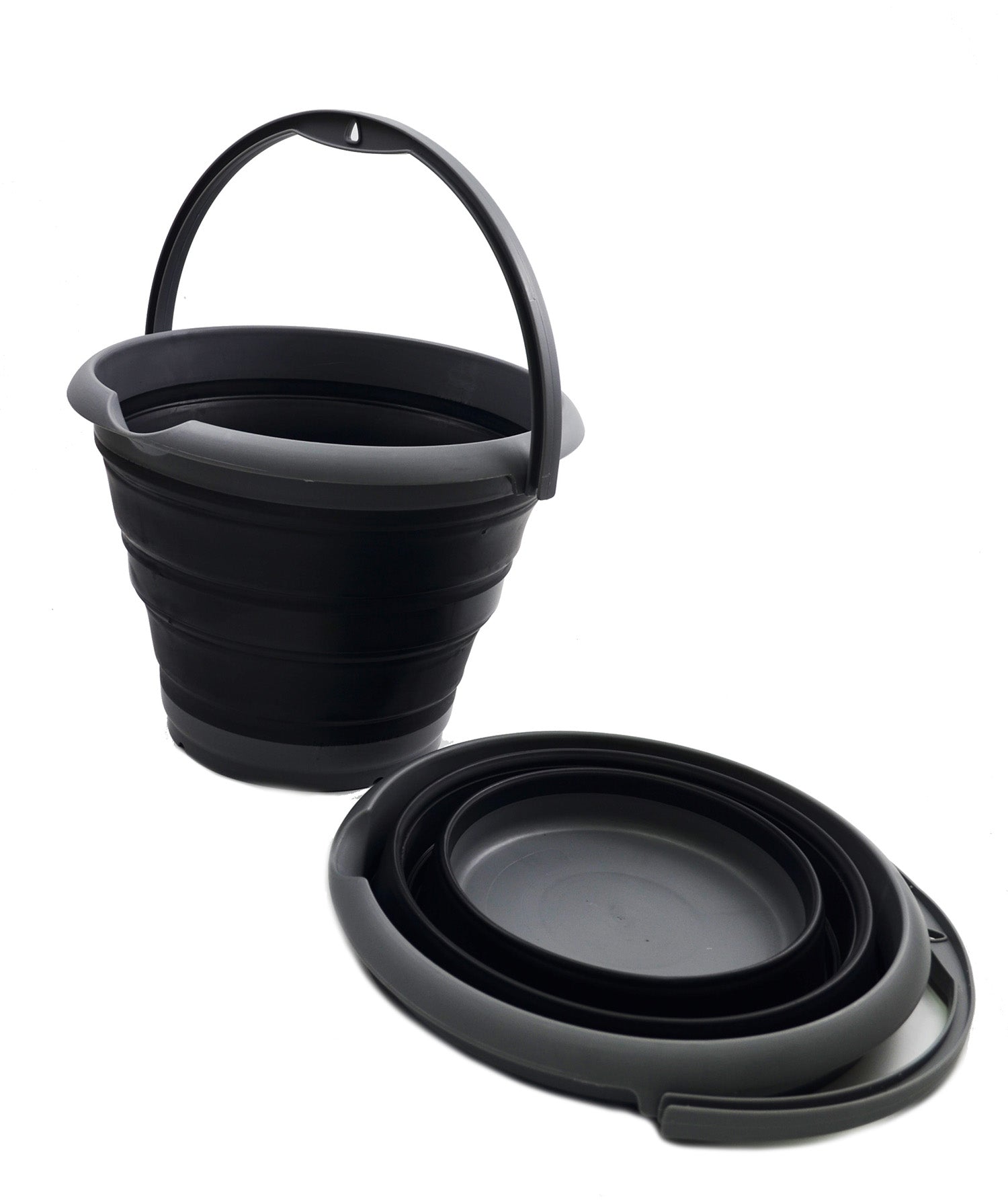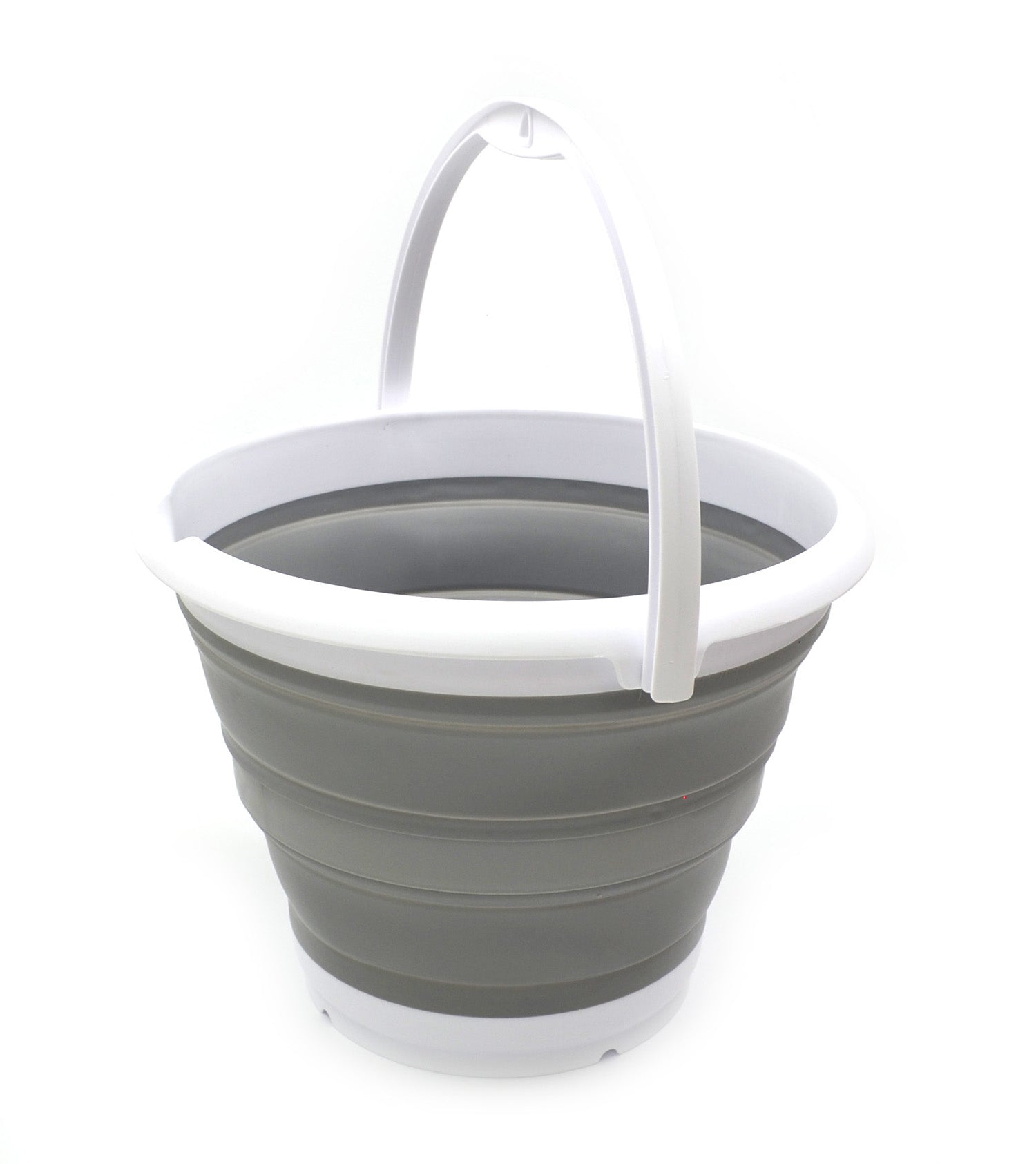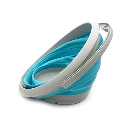 Details: **Collapsible TPE Bucket **Brand: SAMMART **Material: TPE & PP **Expanded size: 12.8(dia) x 9.45 (h) inches **Collapsed size: 12.8(dia) x 2.17 (h) inches **Capacity: 10L / 2.64 gallons