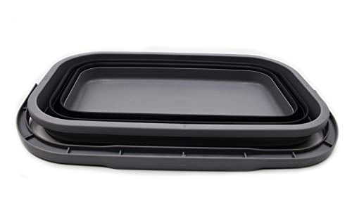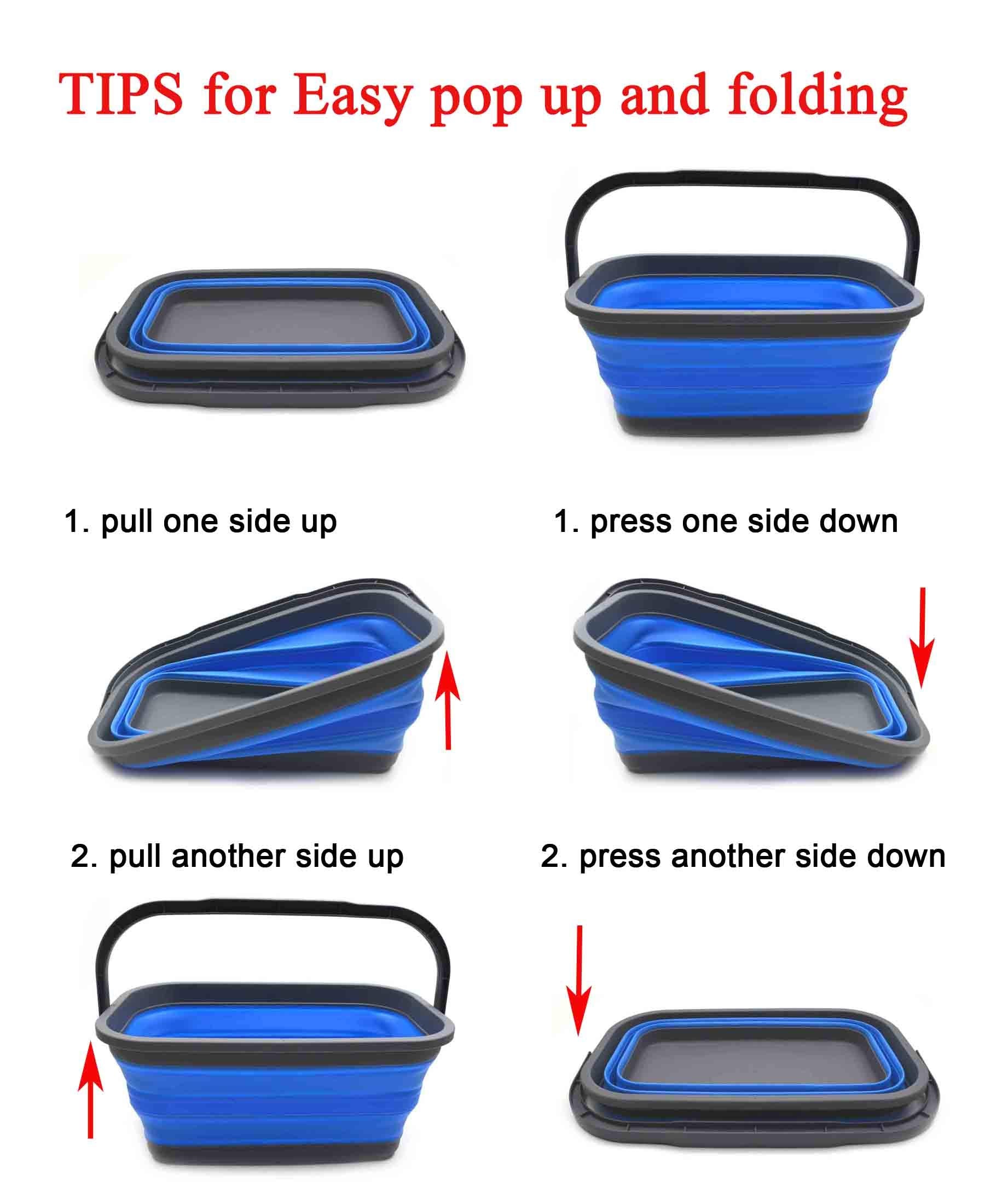 - BPA Free. User friendly by simply pop-up to open when using and collapses to flat for space saving with Expanded size: 17.6 x 11.2 x 7.2(h) inches and its height just 1.7 inches after folds. Save over 70% space when storage. Capacity: 11.6L / 3.06gallon