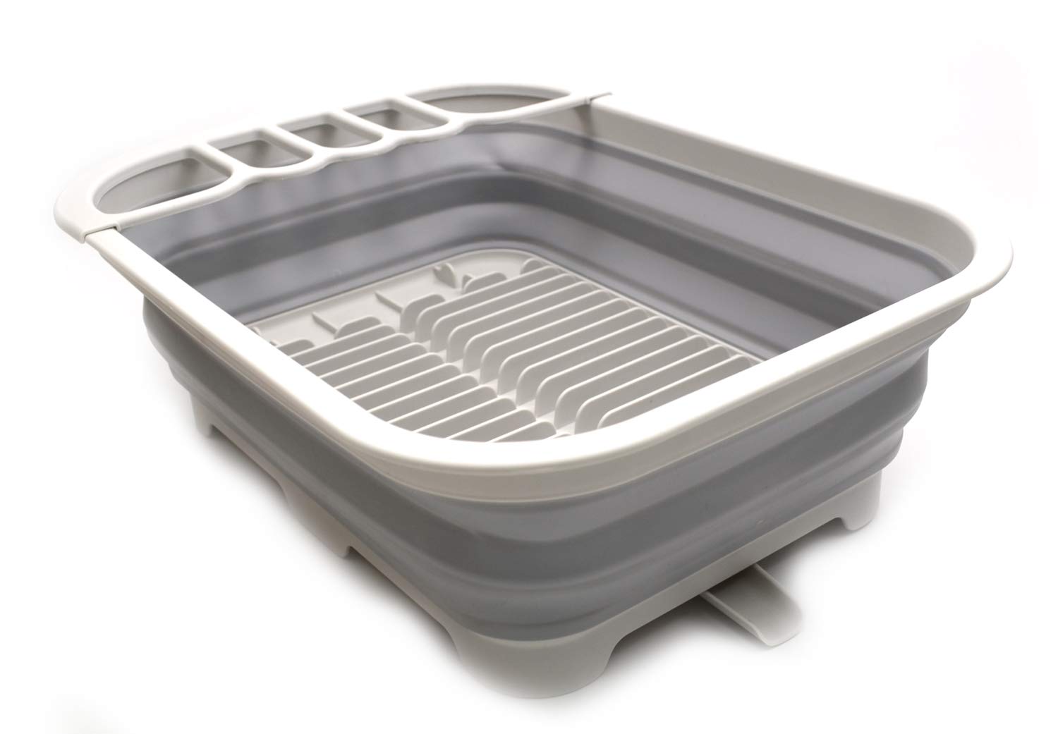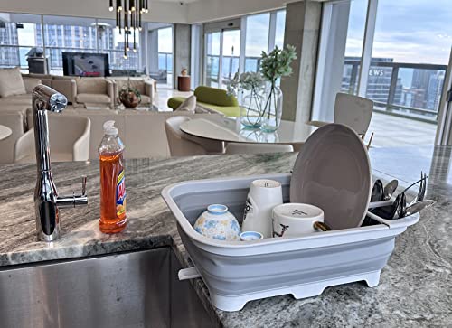SAMMART 12L (3.17 Gallon) Collapsible Dish Drainer with Swivel spout - Foldable Drying Rack Set - Portable Dinnerware Organizer - Space Saving Kitchen Storage Tray