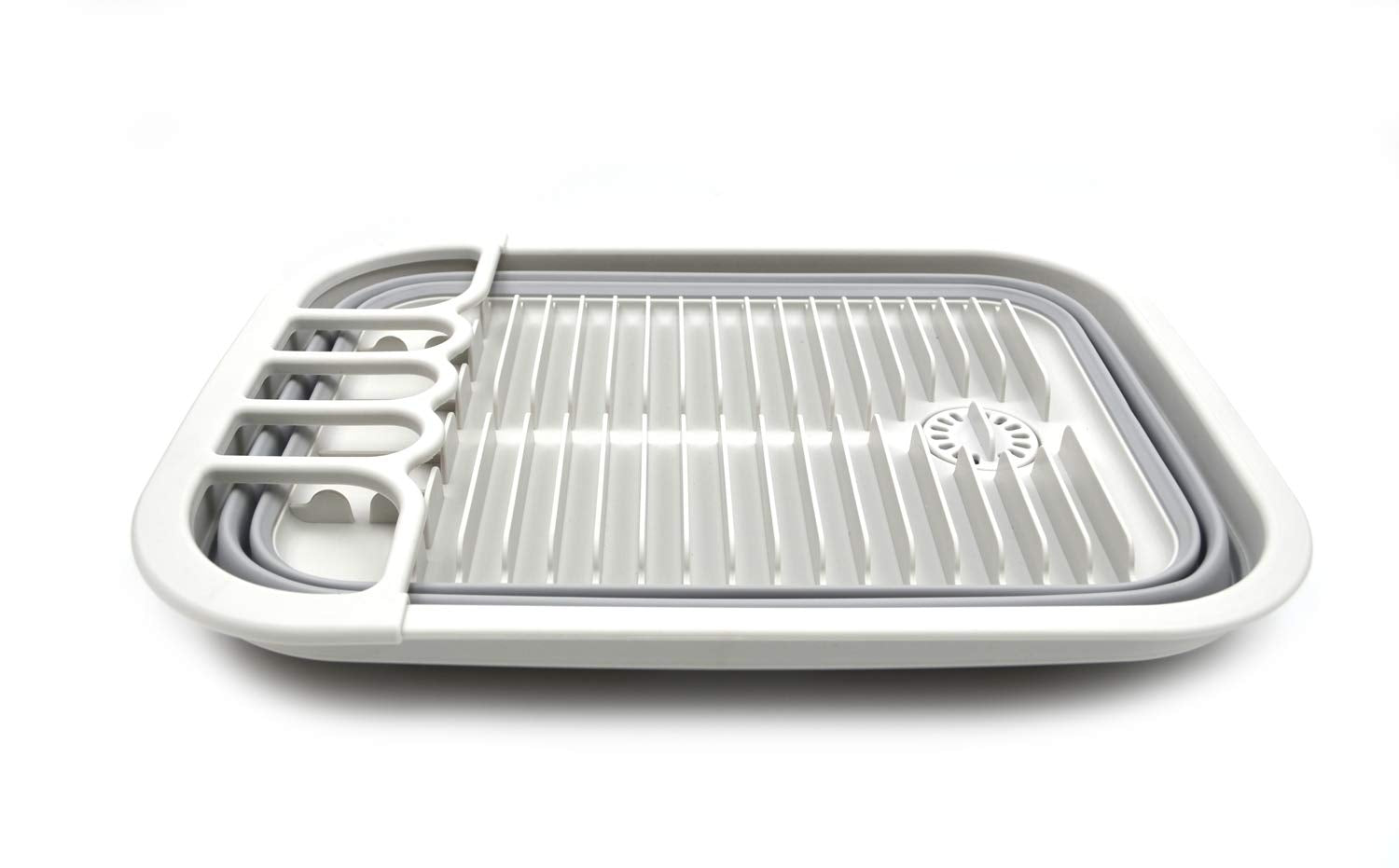 Details: **Collapsible Dish Drainer with Swivel Spout **Brand: SAMMART **Material: TPE & PP **Expanded size: 17.9 x 13.5 x 5.7 inches **Collapsed size: 17.9 x 13.5 x 2.1 inches