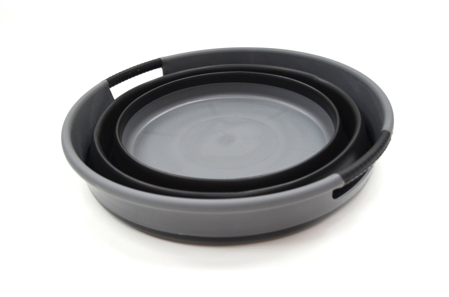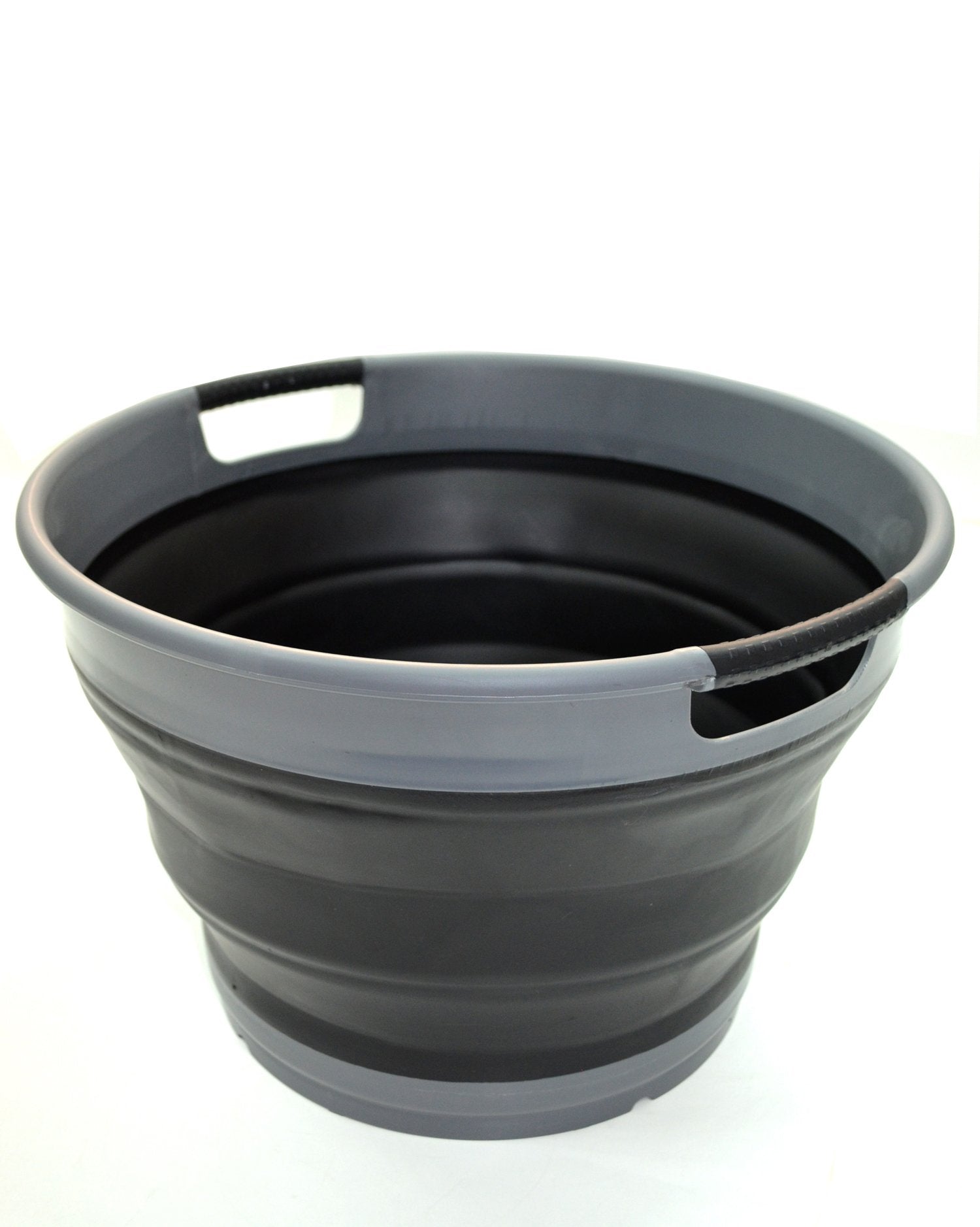 Details: **Collapsible TPE/PP Round Tub **Brand: SAMMART **Material: TPE & PP** size: 15 dia. x 9.625 (h) inches **Collapsed size: 15 dia. x 2.7 (h) inches **Capacity: 12 L