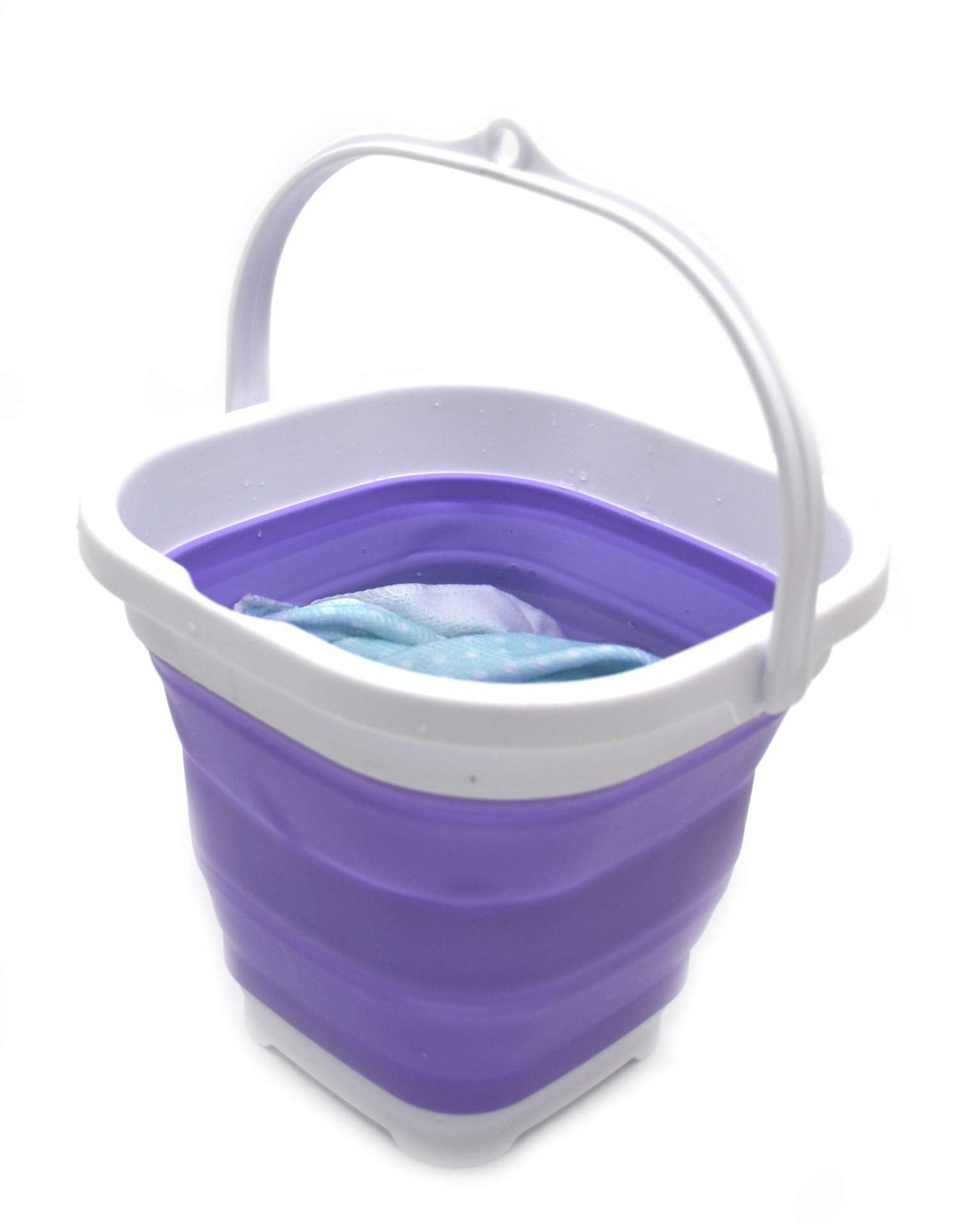 SAMMART 2.6L (0.68 Gallon) Super Mini Sqare Collapsible Plastic Bucket - Foldable Square Tub - Portable Fishing Water Pail - Space Saving Outdoor Waterpot