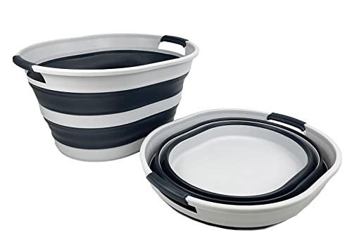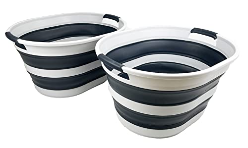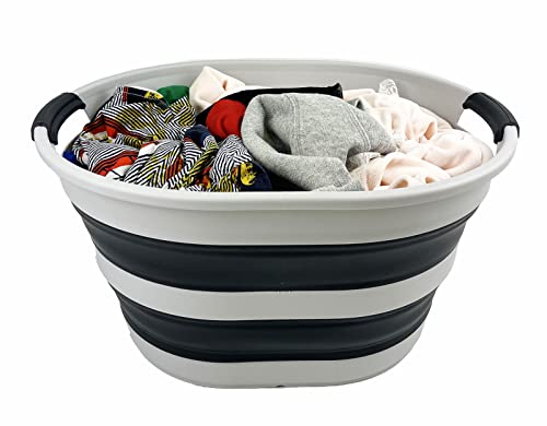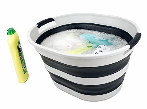 SAMMART 23L (6 Gallons) Collapsible Plastic Laundry Basket - Oval Tub - Foldable Storage Container/Organizer - Portable Washing Tub - Space Saving Laundry Hamper