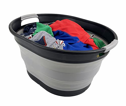 SAMMART 23L Collapsible laundry Basket with Handle - Portable Outdoor Picnic Basket/Crater - Foldable Shopping Bag - Space Saving Storage Container