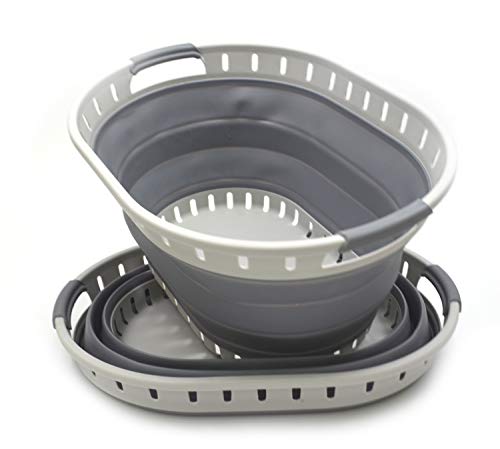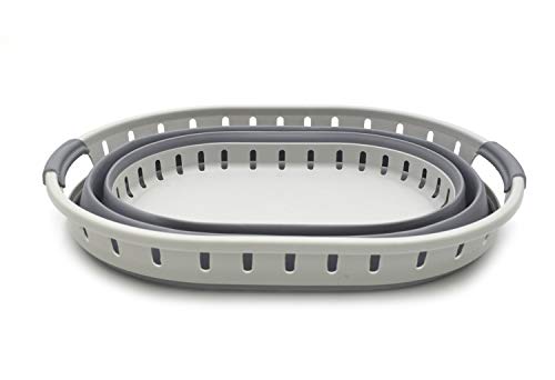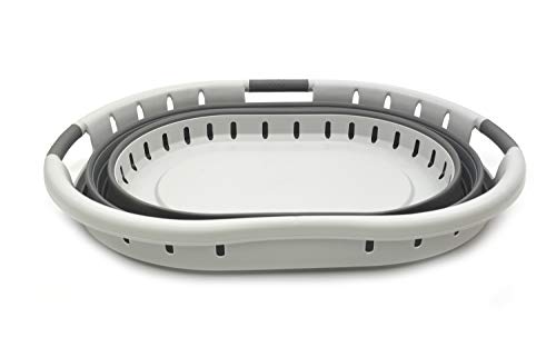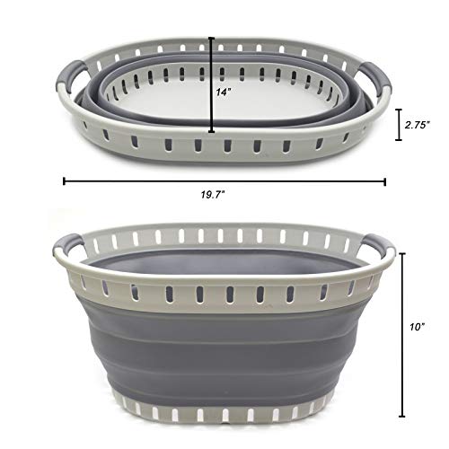 Details: **Collapsible TPE/PP Oval Basket **Brand: SAMMART **Material: TPE & PP **Expanded size: 19.7 x 14.9 x 10.2 inches **Collapsed size: 19.7 x 14.9 x 2.4 inches