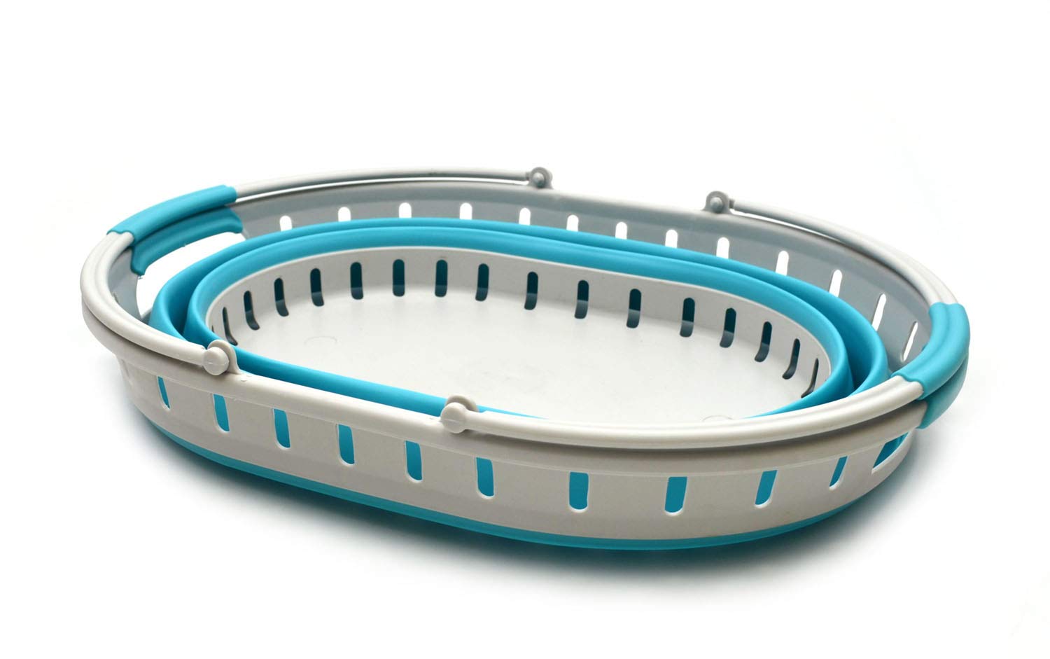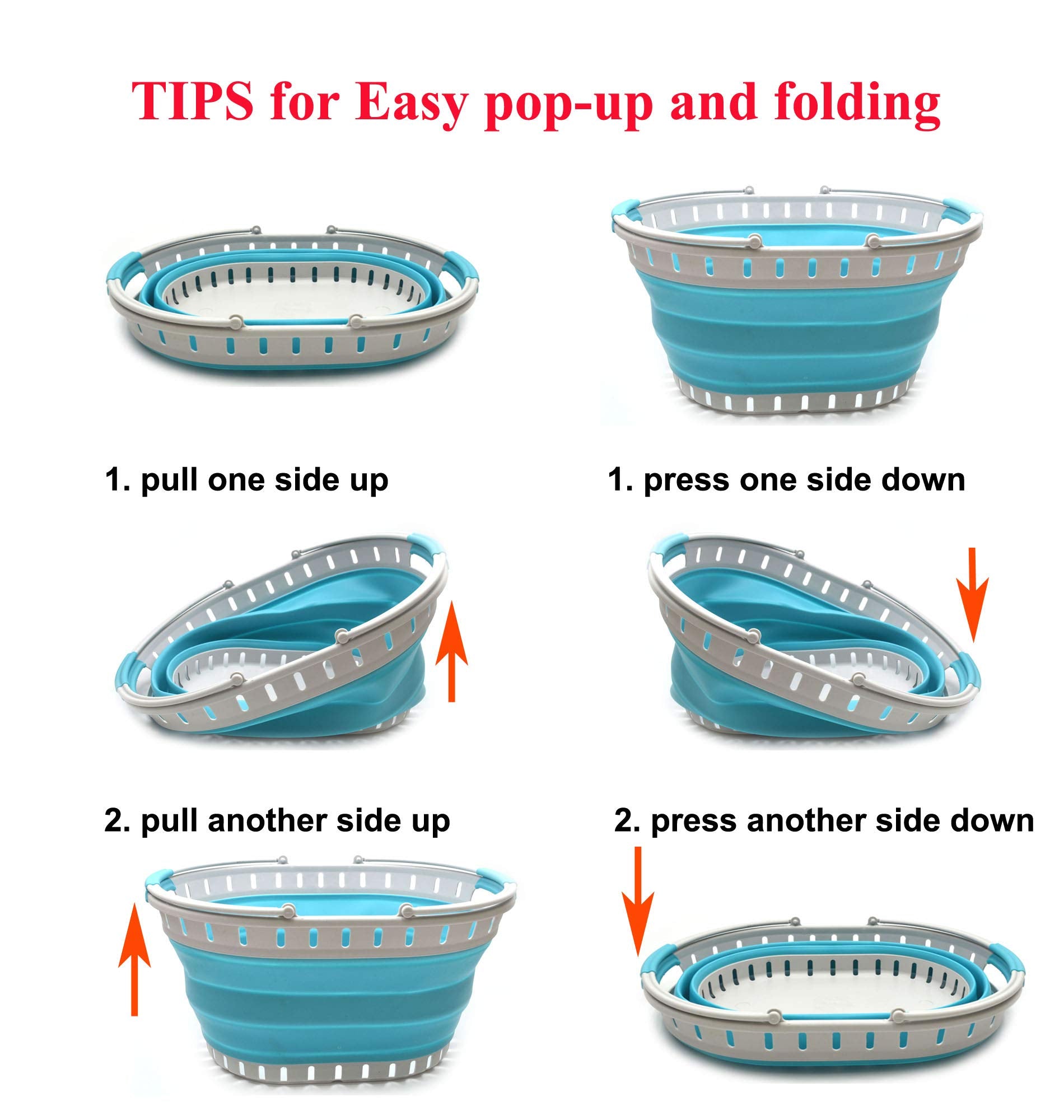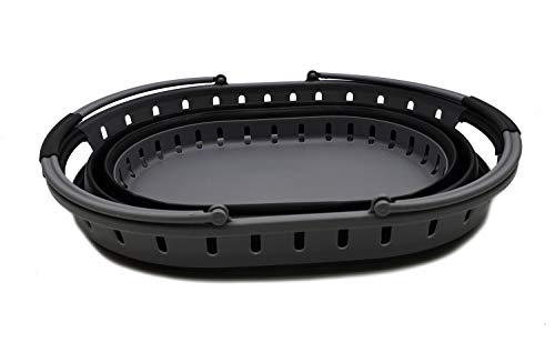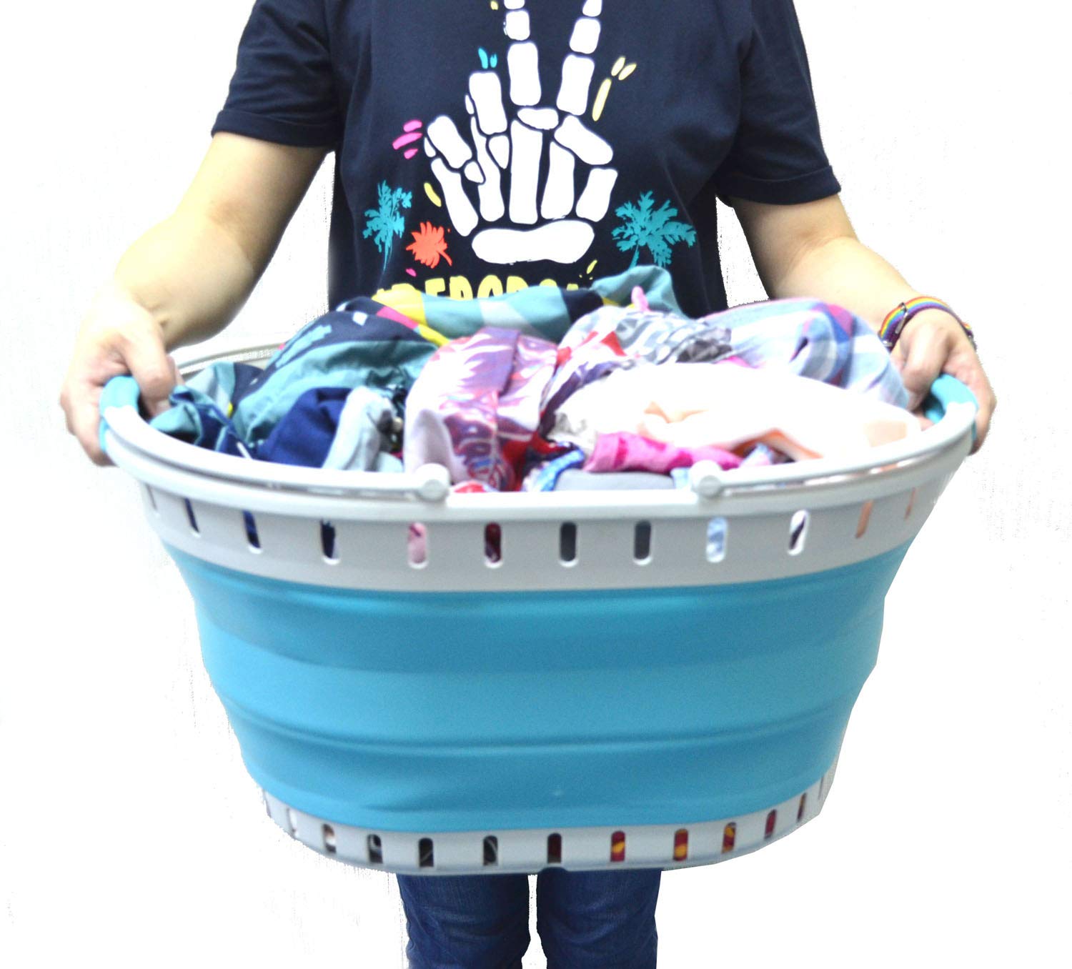 Details: **Collapsible TPE/PP Oval Basket **Brand: SAMMART **Material: TPE & PP **Expanded size: 19.7 x 14.9 x 10.2 inches **Collapsed size: 19.7 x 14.9 x 2.4 inches