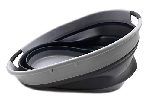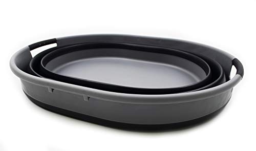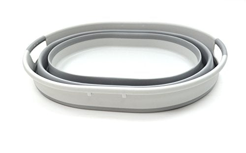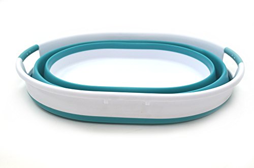 Details: **Collapsible TPE/PP Oval Tub **Brand: SAMMART **Material: TPE & PP **Expanded size: 18.5 x 15.2 x 9.625 inches **Collapsed size: 18.5 x 15.2 x2.6 inches **Capacity: 20 L
