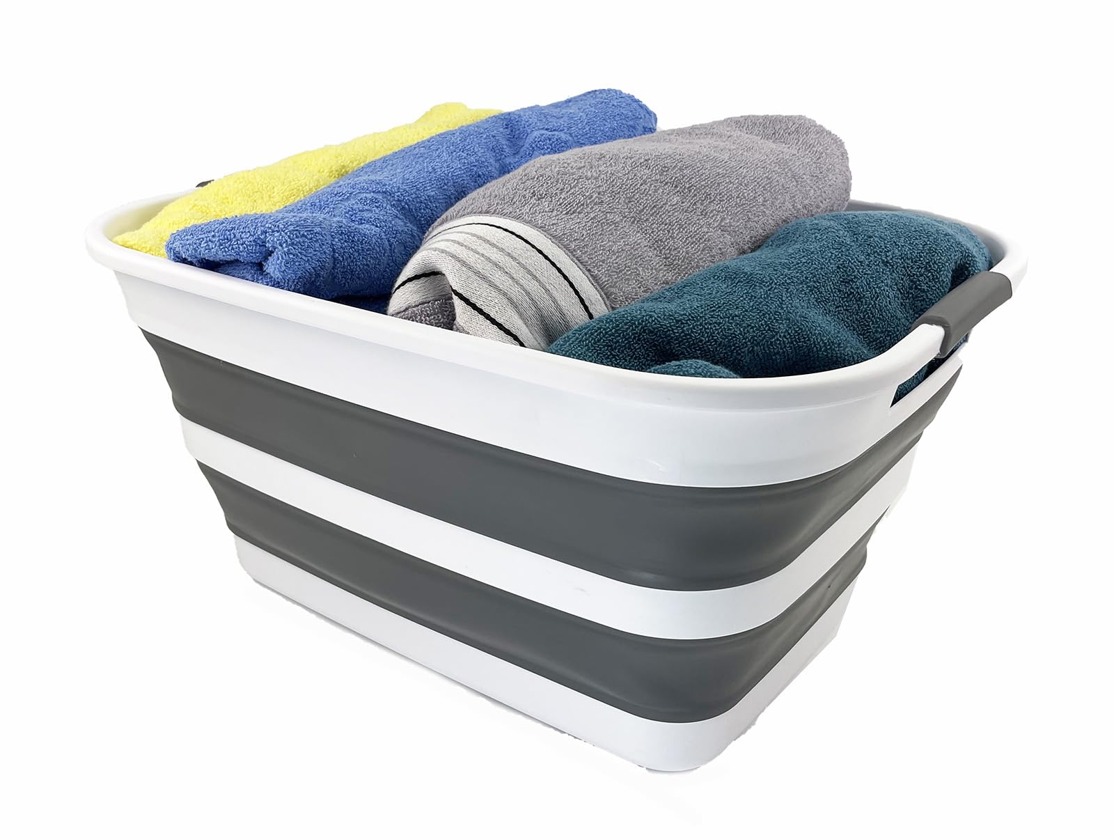 SAMMART 27L (7.1 Gallons) Collapsible Plastic Laundry Basket with Handle-Foldable Pop Up Storage Basket with handle